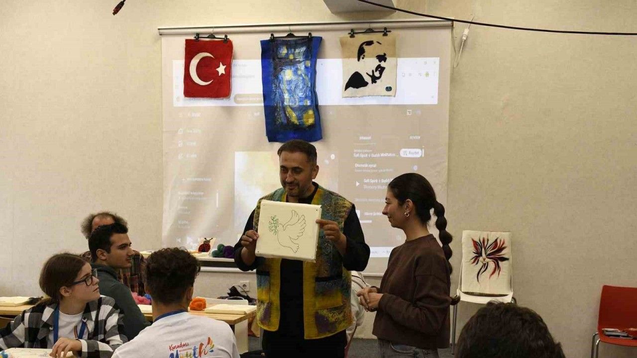 Dış İlişkiler Proje Yöneticisi Burcu Kanbal, "Programın bugün 2’inci günündeyiz. Dün muazzam bir açılış oldu. Bugün ise biraz geleneksel motifleri misafirlerimizle paylaşabileceğimiz bir atölye planladık. Şuan tüm arkadaşlarımız keçe atölyesindeler. Şuan tüm öğrenciler çok büyük keyif alıyorlar. İstedik ki hem Kuşadası’nı simgeleyen bir güvercin motifinin işleyelim dedik. Hem de kendi ülkelerine ve kendi şehirlerine buradan bir hediye götürebilsinler, bununda bir el emeği ürünü olması oldukça kıymetli bizim için. Hepsi çok mutlu görünüyor" dedi.