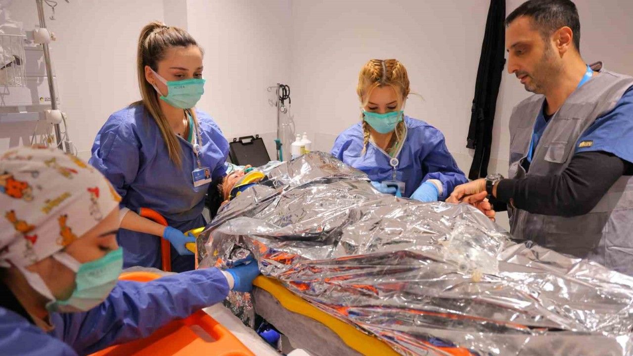 Kahramanmaraş HG Hospital’da depreme hazırlık kapsamında geniş katılımlı tatbikat gerçekleştirildi. Senaryo gereği kentte meydana gelen depremde enkaz altından çıkarılan 60 yaralıdan 9’u, üç ayrı ambulansla hastanenin acil servisine sevk edildi. Gerçeğini aratmayan tatbikat, hem personelin hem de vatandaşların afet anındaki davranışlarını ölçmeyi amaçladı. Tatbikat çerçevesinde ambulansların hastane bahçesine peş peşe giriş yapmasıyla birlikte acil serviste yoğun bir hareketlilik yaşandı. Yaralı rolündeki vatandaşlar, sağlık ekipleri tarafından hızlıca sedyelere alınarak müdahale odalarına taşındı. Senaryo gereği yaralı yakınlarının bağırıp çağırması, sinir krizi geçirmesi ve bilgi almak için acil servise yüklenmesi, tatbikatın gerçekçiliğini artırdı. Acil servis ekipleri, doktorlar, hemşireler, güvenlik personeli ve hastane yönetimi, olayın tüm aşamalarında görev alarak koordinasyon becerilerini test etti. Enkazdan çıkarılan yaralıların bir kısmına travma müdahalesi yapılırken, bazıları acil görüntüleme alanına yönlendirildi.