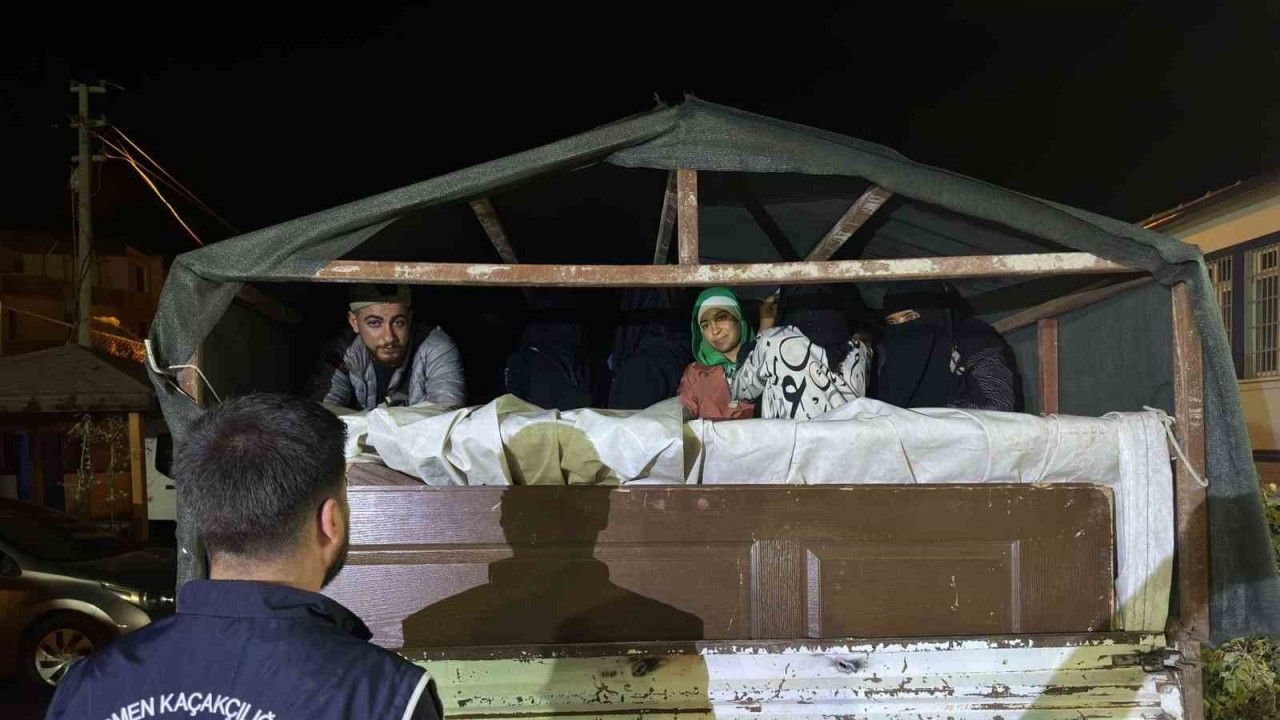 Hatay’da polis ekipleri tarafından durdurulan kamyonetin kasasında 16’sı kadın 4’ü erkek toplam 20 göçmeni yakalandı.