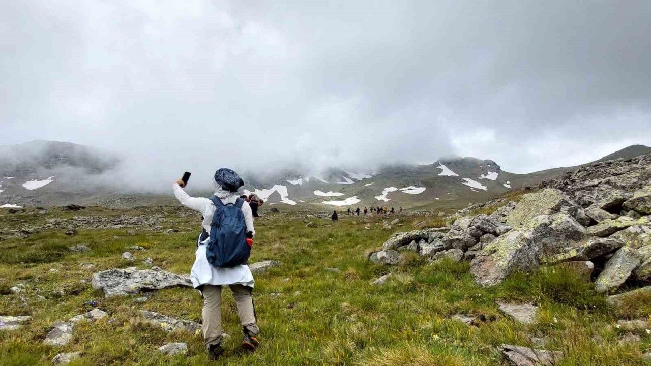Yaklaşık 3 bin metre yükseklikten Acembol Gölleri’nin büyüleyici manzarasını sis perdesi altından izleyen sporcular, soğuk havaya rağmen doğanın sunduğu eşsiz güzelliklerin tadını çıkardı.