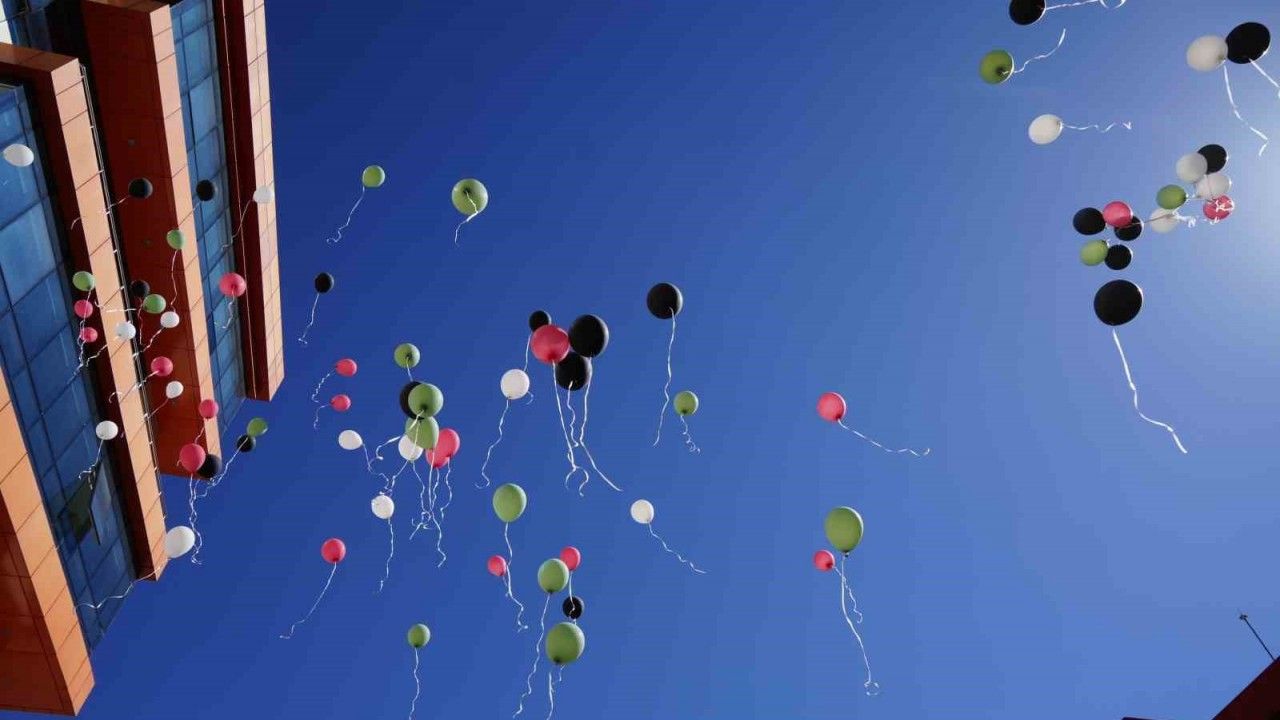 Gümüşhane Üniversitesi öğrencileri, Gazze’de yaşanan insanlık dramına dikkat çekmek amacıyla "Kampüsten Gazze’ye Tek Yürek" etkinliğinde bir araya gelerek Filistin bayrağının renklerinden oluşan onlarca balonu gökyüzüne bıraktı.