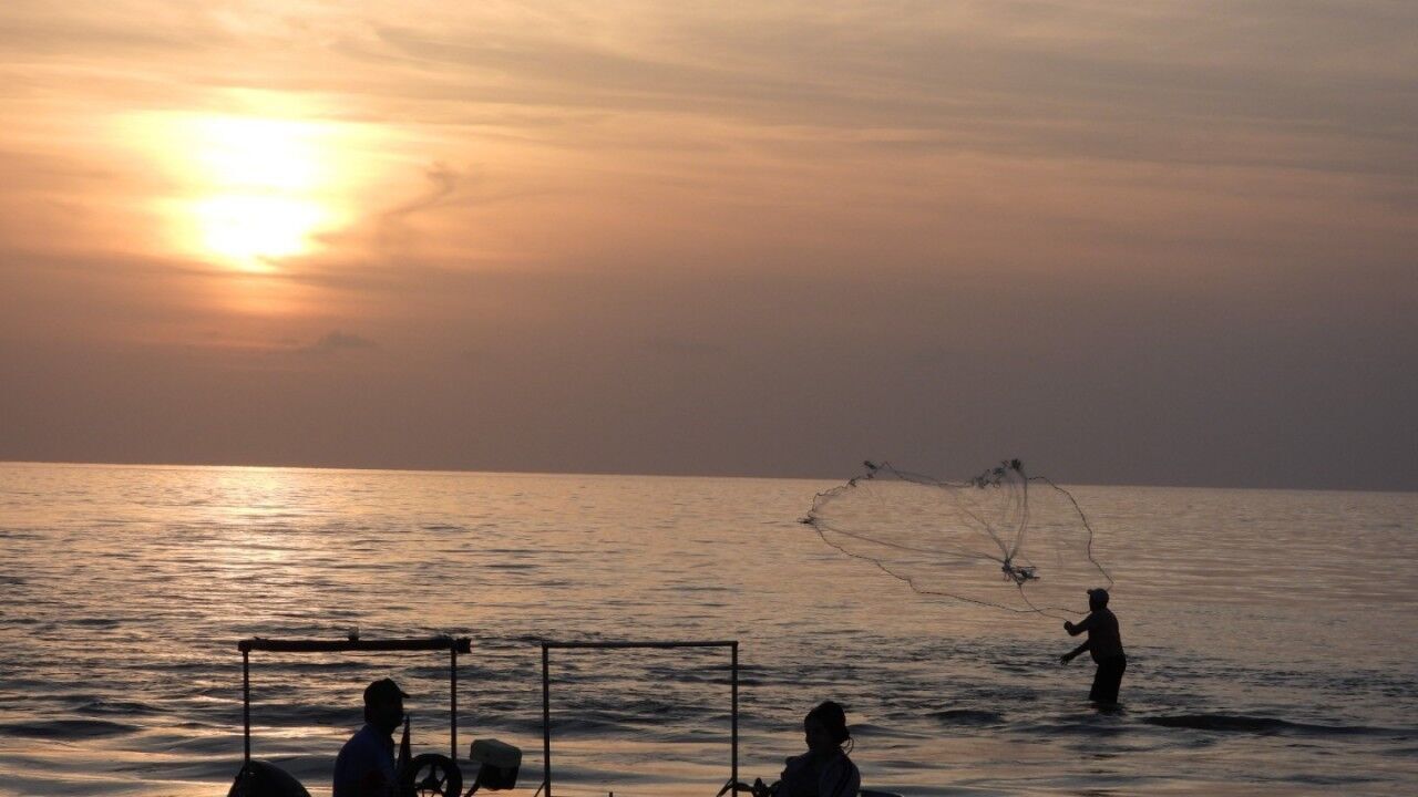 Hatay’ın Samandağ ilçesinde bulunan Asi Nehri’nde balıkçıların gün batımında balık avı, kartpostallık görüntü oluşturdu.