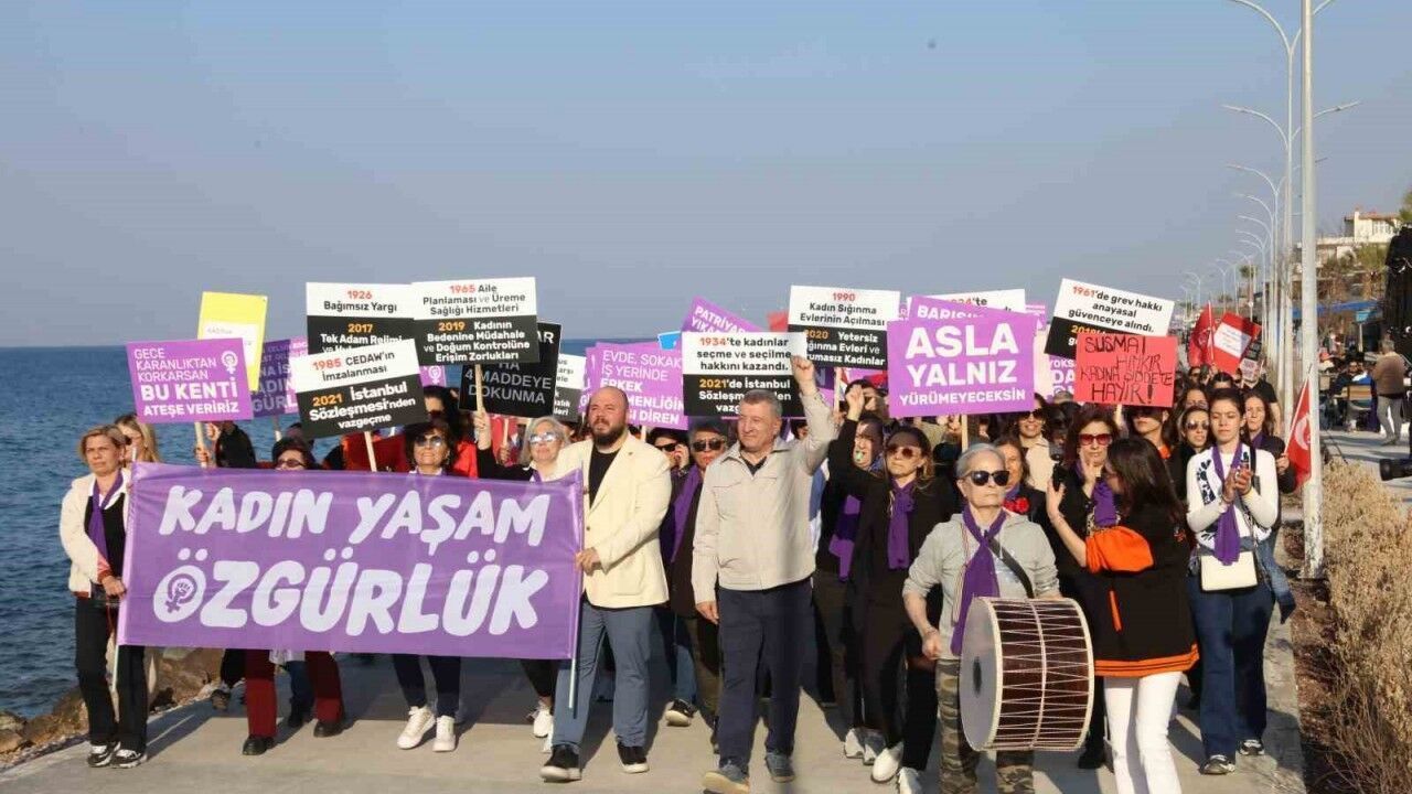Güzelbahçe’de kadın hakları için tersine yürüyüş düzenlendi