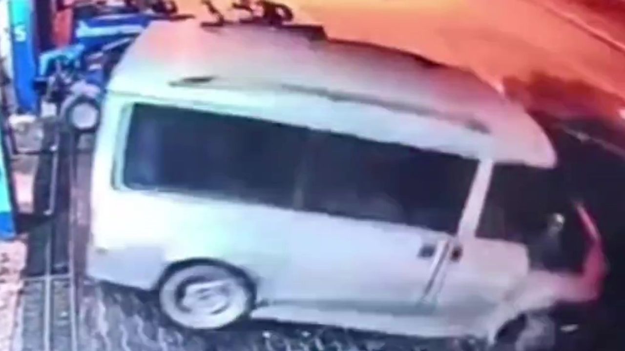 Hatay’da sürücüsünün direksiyon hakimiyetini kaybettiği hafif ticari aracın park halindeki patpata ve minibüse çarptığı anlar kameraya yansıdı.