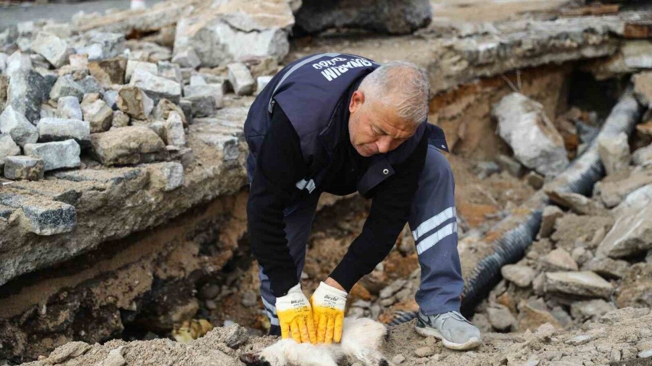 Öte yandan ekipler, onarım çalışmaları sırasında, hafriyat altında kalmış bir kediyi de sağ salim kurtardı. Büyükşehir Belediyesi personeli, hafriyat altına sıkışan kediyi çıkardıktan sonra kalp masajı uygulayarak tekrar hayata döndürdü. Kedinin sağlık kontrolü tamamlandıktan sonra hayvan barınağına teslim edileceği bildirildi.