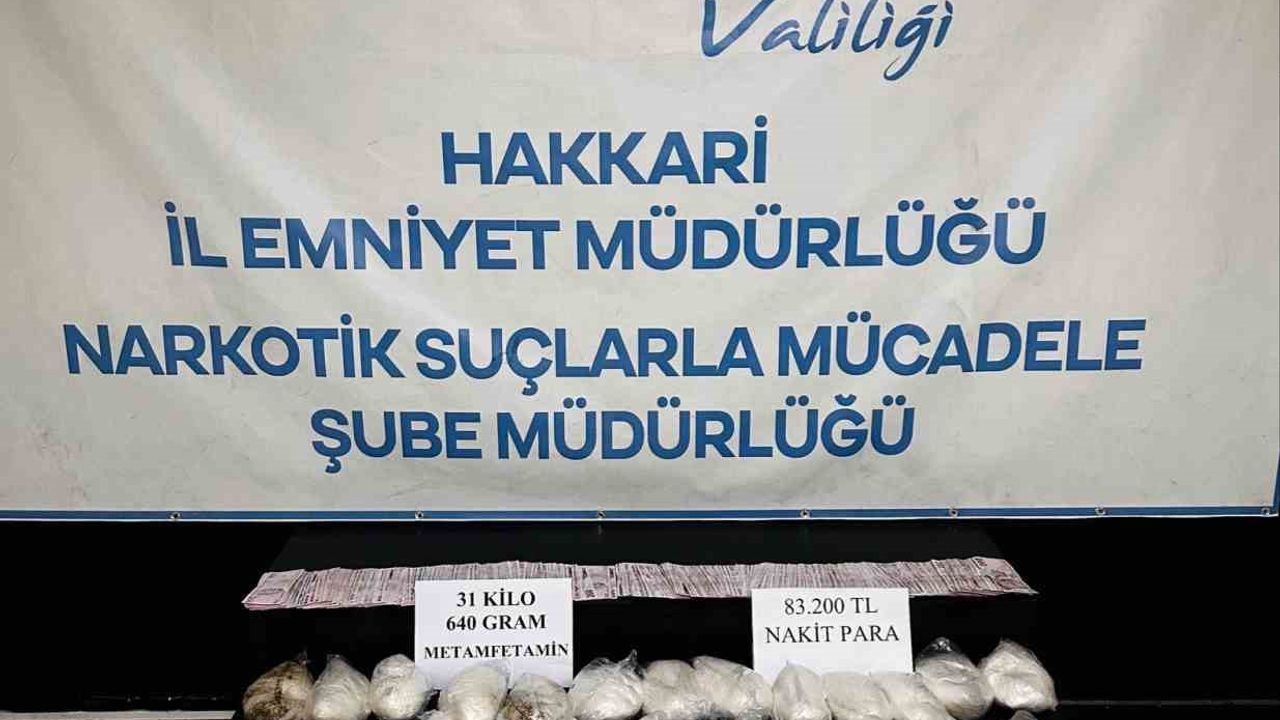 Hakkari’de 60 parça hâlinde toplam 31 kilo 640 gram metamfetamin maddesi ele geçirildi.