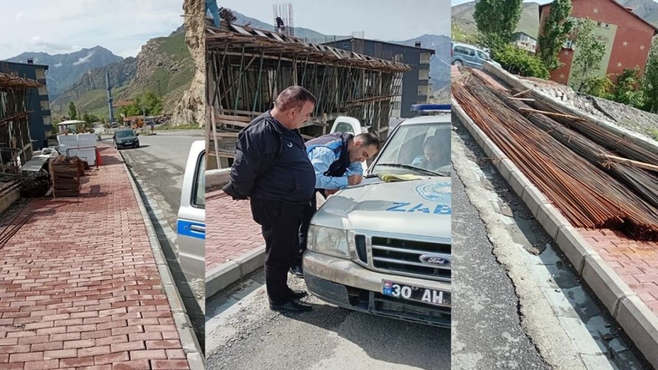 Hakkari’de kaldırıma inşaat malzemesi yığan bir bina sahibine, yapılan uyarılara rağmen kurallara uymadığı gerekçesiyle cezai işlem uygulandı.