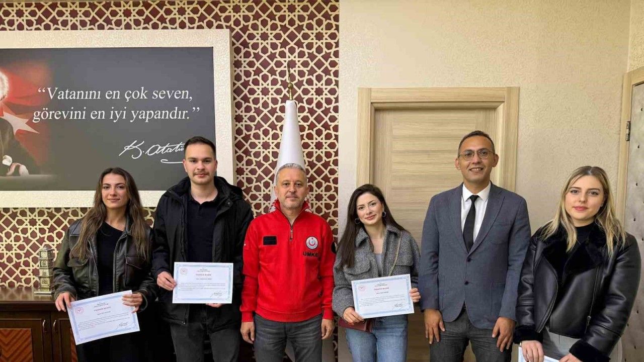 Düzce Atatürk Devlet Hastanesi Muncurlu Ek Yerleşkesinde Çocuk Acil, Çocuk Poliklinikleri ve Gebe Merkezi’nde boyama çalışmaları gerçekleştiren Düzce Üniversitesi öğrencileri ve Dümerang ekibine Düzce İl Sağlık Müdürü Dr. Yasin Yılmaz teşekkür belgesi vererek gençleri onurlandı.