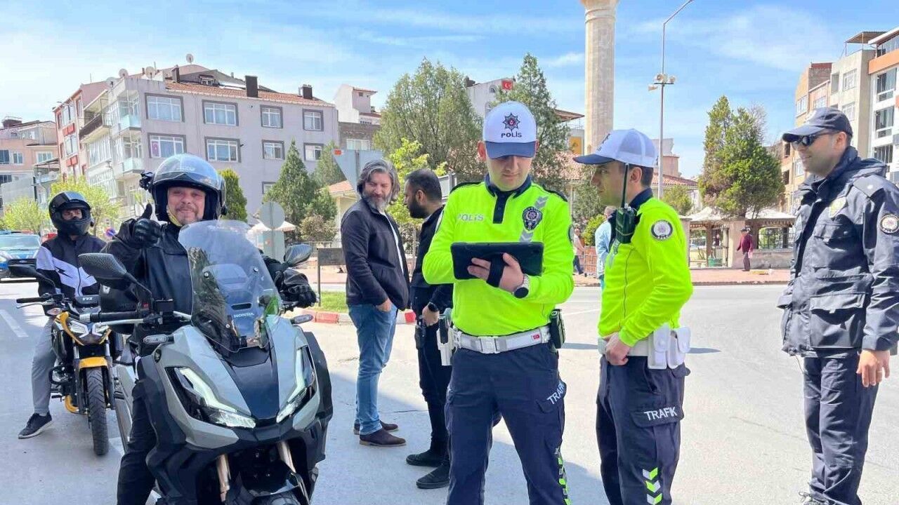 Tekirdağ’ın Hayrabolu ilçesinde, İlçe Emniyet Müdürlüğü Trafik Tescil ve Denetleme Büro Amirliği ekipleri tarafından motosiklet sürücülerine yönelik denetim yapıldı.