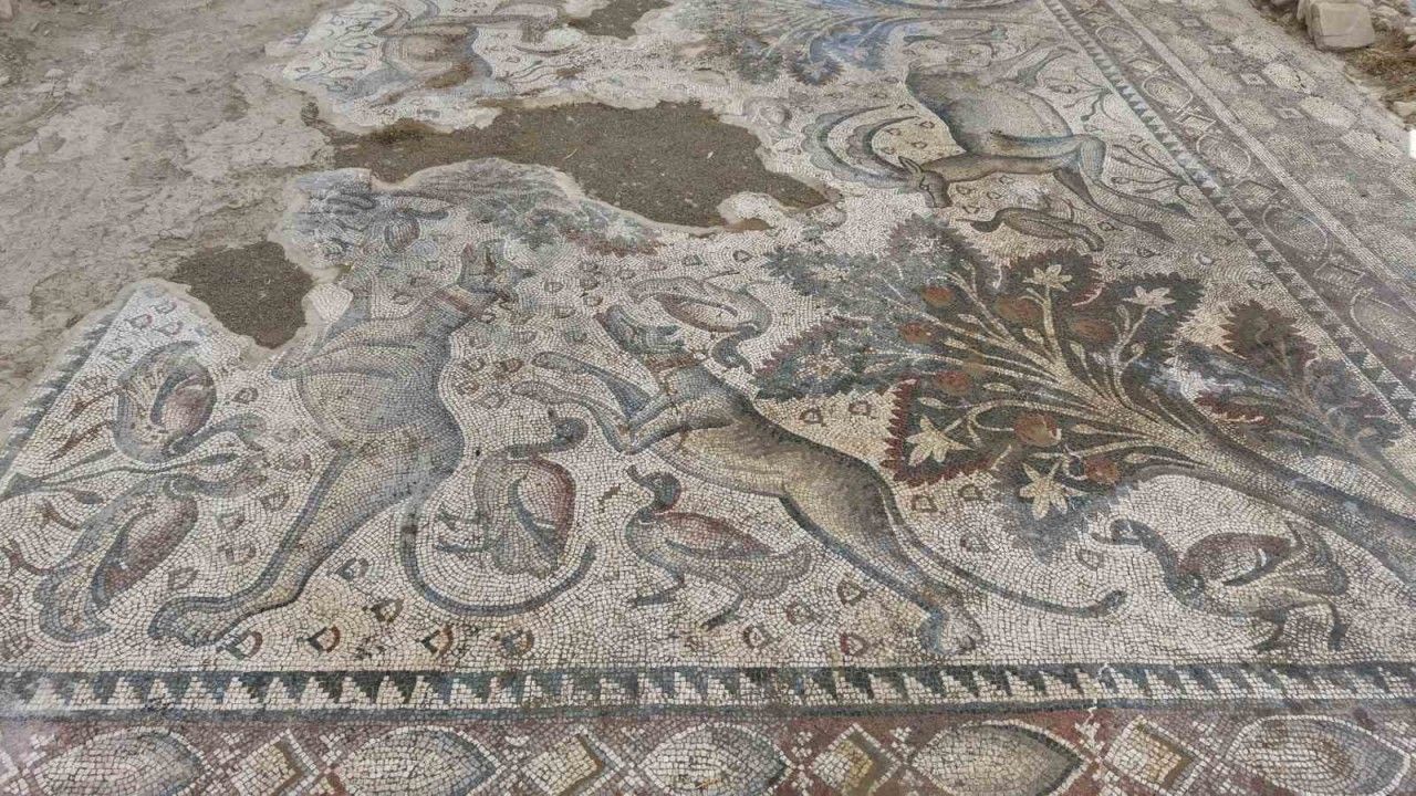 Elazığ’ın Salkaya Köyü’nde fidan dikerken tesadüfen bulunan bin 700 yıllık Roma mozaiğinde çalışmalar devam ediyor. 84 metrekarelik alandaki hayvan figürleri, dönemin burjuva yaşamını yansıtıyor.
