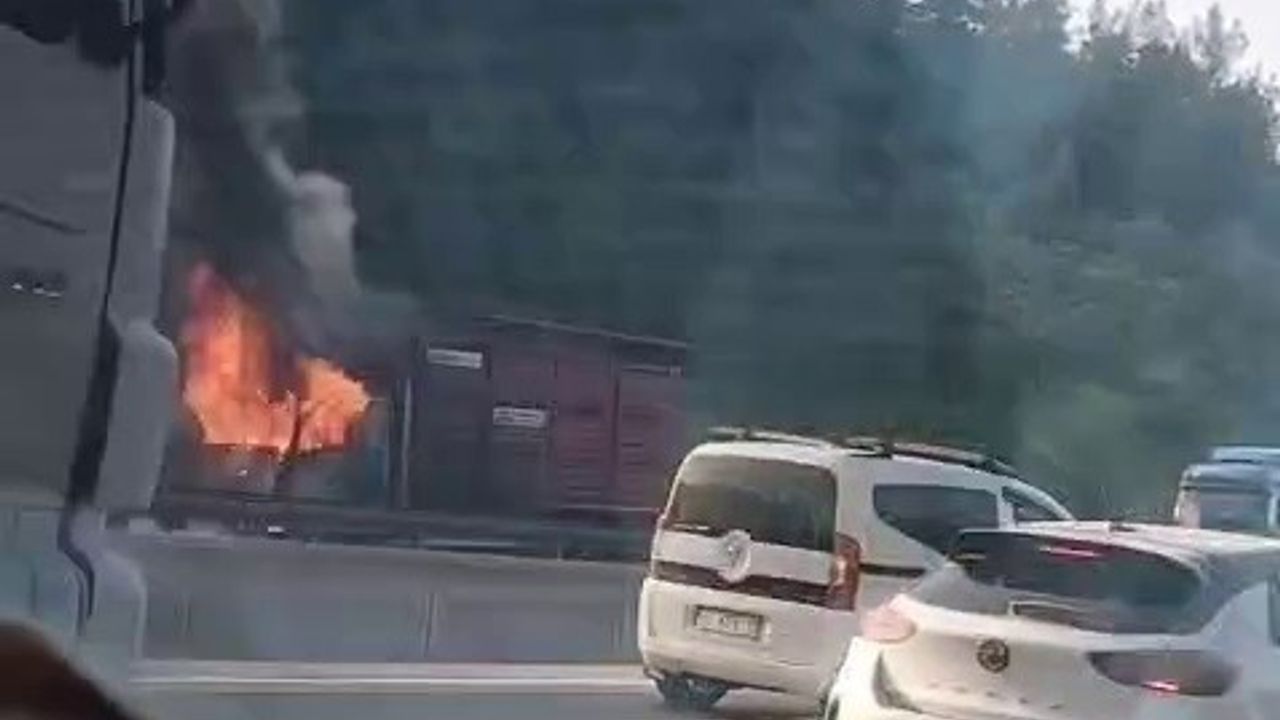 Bursa’nın Gemlik ilçesinde seyir halindeki canlı hayvan yüklü kamyon alevlere teslim oldu.