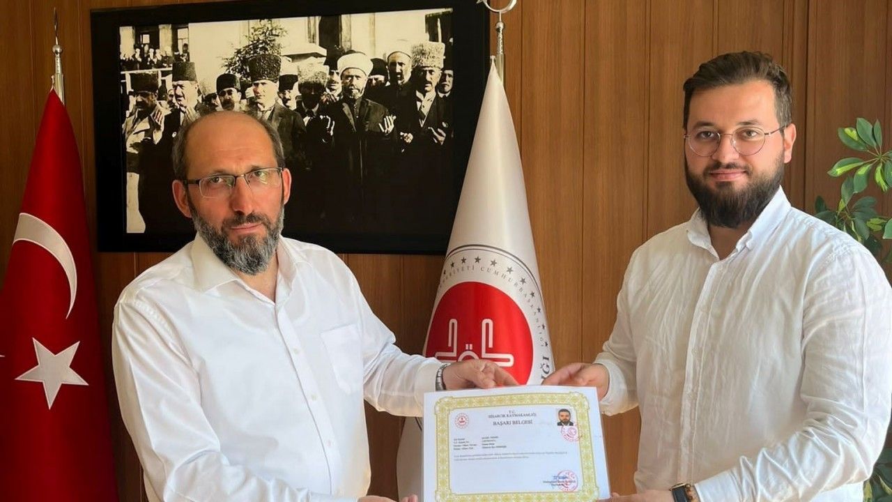 Hisarcık Kaymakamı Muhammed Samet Bahar, İlçe Müftüsü Sebahattin Akyol ve personele başarı ve üstün başarı belgesi takdim etti.