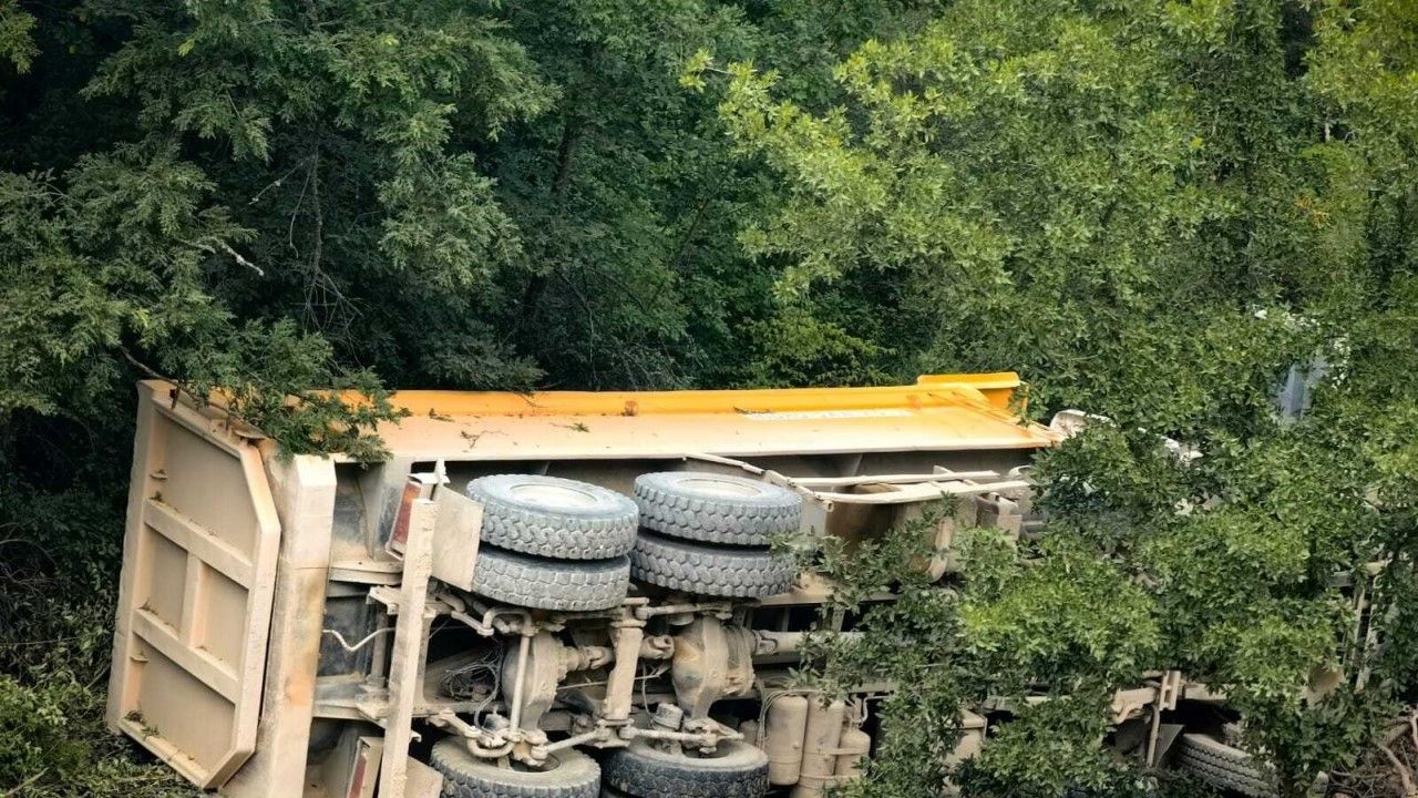 Bilecik’in Osmaneli ilçesinde hızlı tren inşaatında çalışan hafriyat kamyonunun devrilmesi sonucu sürücü yaralandı.