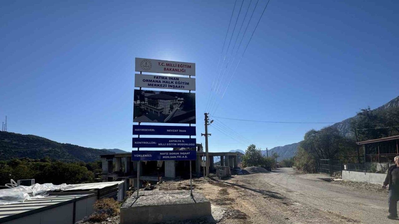 Antalya’nın İbradı ilçesine bağlı Ormana Mahallesi’nde, İstanbul’da yaşayan iş insanı tarafından "Fatma İnan Halk Eğitim Merkezi" yaptırılıyor.