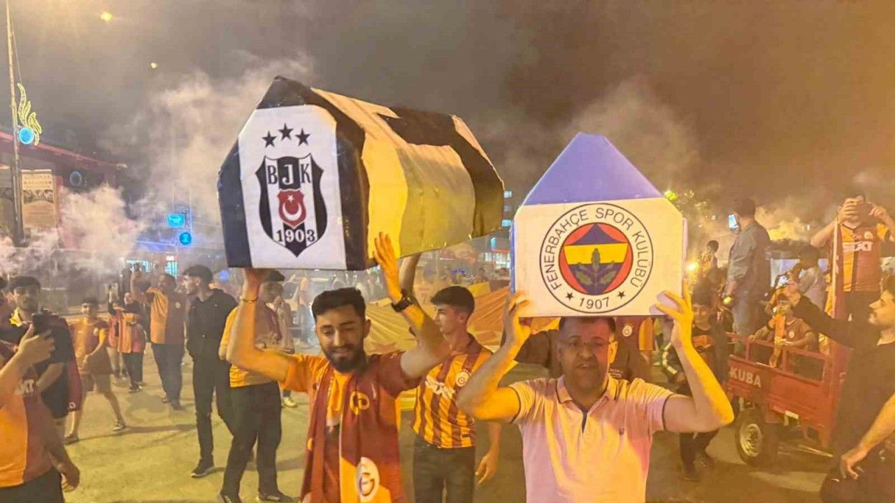 Trendyol Süper Lig’in 36. haftasında Galatasaray ile Kayserispor RAMS Park’ta karşı karşıya geldi. Sarı kırmızılılar rakibini 3-0 mağlup ederek üst üste 3. kez şampiyonluğa ulaştı. Maç bitimi sonrası tüm Türkiye’de olduğu gibi Iğdır’da da taraftarlar büyük sevinç yaşarken şampiyonluğu kutladı. Zübeyde Hanım Bulvarında bir araya gelen ve kutlamaları sürdüren sarı-kırmızılı taraftarlar, Fenerbahçe ve Beşiktaş ambleminin yer aldığı tabutla gezdi.