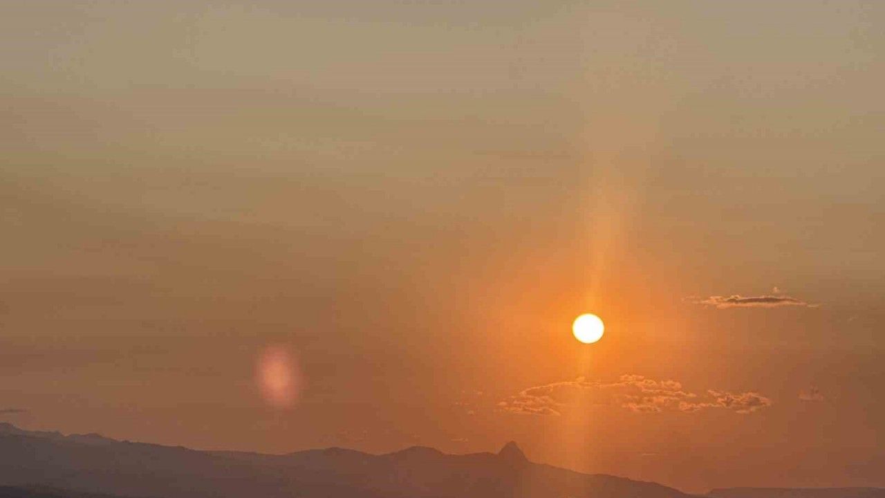 Iğdır’da Tekelti dağı yanında gün batımı ile yansıyan güneş ışıklarının oluşturduğu yansıma görsel şölen oluşturdu.