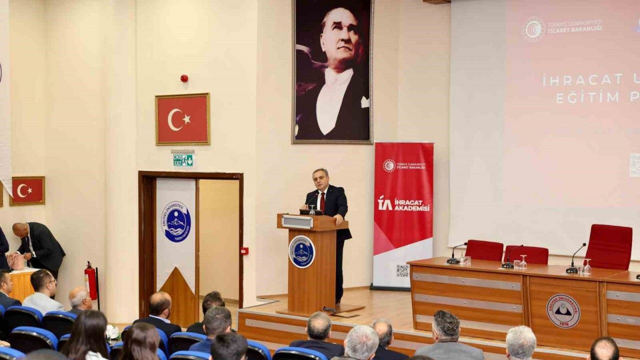 Ticaret Bakanlığı ile Erciyes Üniversitesi (ERÜ) arasında imzalanan iş birliği protokolü ile ihracatçılara yönelik yürütülen eğitim ve bilgilendirme faaliyetlerinin akademik ve kurumsal bir çatı altında güçlendirilmesi amacıyla hayata geçirilen İhracat Akademisi’nin eğitim programının ilk dersi, İhracat Genel Müdürü Mehmet Ali Kılıçkaya tarafından verildi.