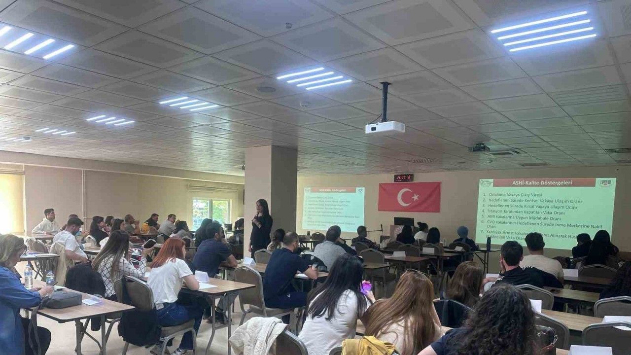 İl Ambulans Servisi’ne bağlı istasyonlarda görev yapan kalite sorumlularının katılım sağladığı bilgilendirme toplantısı, Kalite Koordinatörü olarak görevine yeni başlayan Dr. Setenay Mısır tarafından gerçekleştirildi. Toplantıda, kalite süreçlerinin etkinliği ve sürekli iyileştirme hedefleri ele alındı. Ayrıca, uzun yıllar İl Ambulans Servisi Kalite Koordinatörü olarak görev yapan Zeynep Koç’a, İl Ambulans Servisi Başhekimi Uzm. Dr. Erkan Duman tarafından teşekkür belgesi takdim edildi.