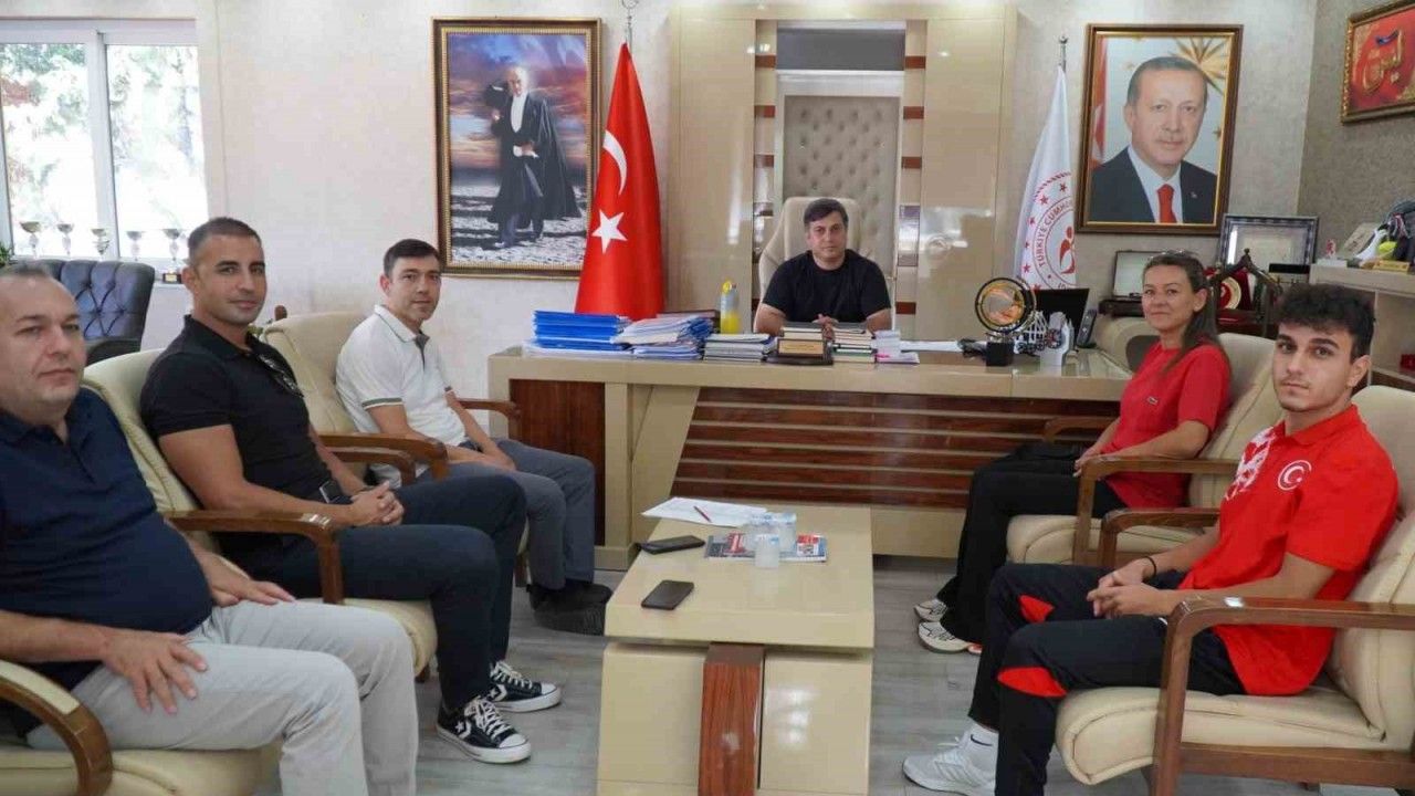 Manisa Gençlik ve Spor İl Müdürü Yunus Öztürk, U20 Atletizm Balkan Şampiyonası’nda 4100 metre bayrak yarışında Balkan üçüncülüğü elde eden Manisalı milli sporcu Buğra Güleryüz ve antrenörü Sadet İşciler’i makamında ağırlayarak tebrik etti.
