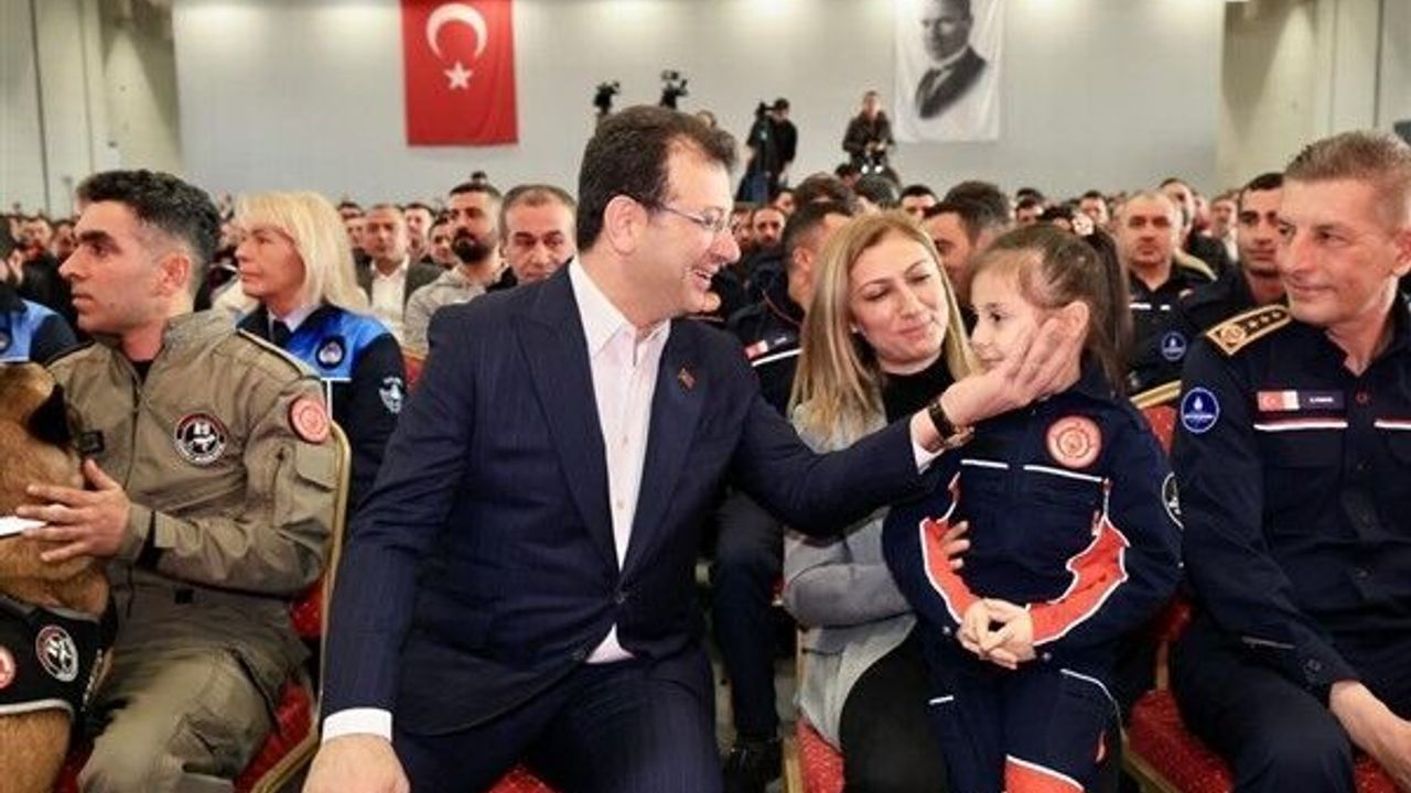 Yenikapı’daki Dr. Mimar Kadir Topbaş Gösteri ve Kültür Sanat Merkezi’nde, “Türkiye Size Minnettar” başlığıyla gerçekleştirilen etkinlikte İmamoğlu, annesi deprem bölgesinde görev yapan, itfaiye kıyafeti giymiş 6 yaşındaki Zeynep Tabakoğlu ile yan yana oturdu.