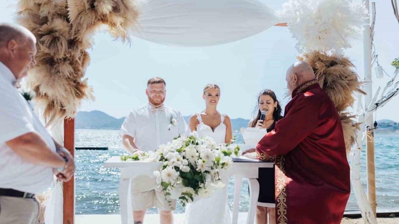 Muğla’nın Marmaris ilçesi, yalnızca denizi, güneşi ve doğal güzellikleriyle değil, aynı zamanda yabancı çiftlerin düğün tercihiyle de öne çıkıyor. Her yıl yüzün üzerinde yabancı çift, evlenmek için Marmaris’i tercih ederken, en çok ilgiyi ise İngiliz çiftler gösteriyor.