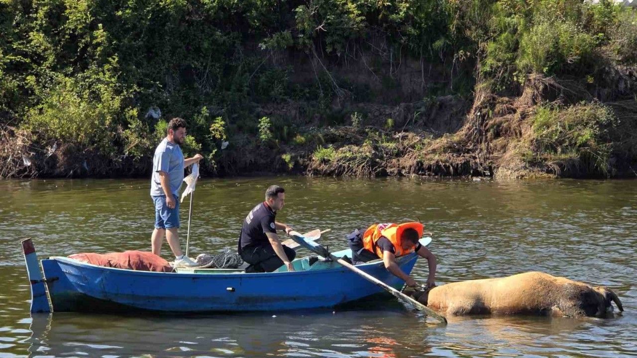 Olay, Samsun’un Terme ilçesinde bulunan Terme Çayı’nda meydana geldi. Alınan bilgiye göre, bölgede otlayan büyükbaş hayvan ayağının kayması sonucu ırmağa düştü. Sudan çıkmak için mücadele eden hayvan suda boğularak telef oldu. Çevredeki vatandaşların olayı 112’ye bildirmesi üzerine bölgeye Samsun Büyükşehir Belediyesi itfaiyesi, Terme Arama Kurtarma Ekibi (TAKE) ile Terme Belediyesi ekipleri sevk edildi. TAKE ve itfaiye ekiplerinin müdahalesiyle sudan çıkartılan hayvanın kulak küpesi olmadığı tespit edildi.