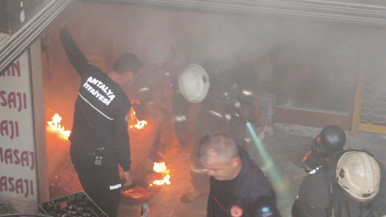 Muratpaşa ilçesi İsmetpaşa Caddesi üzerindeki 5 katlı iş hanının bodrum katında müzik aletleri satılan iş yerinde saat 09.00 sıralarında henüz belirlenemeyen bir nedenle yangın çıktı. Depo kısmında bulunan kartonların kısa sürede tutuşmasıyla alevler yayıldı, iş hanını duman kapladı. Vatandaşların durumu 112 Acil Çağrı Merkezine bildirmesi üzerine bölgeye çok sayıda itfaiye, polis ve sağlık ekibi sevk edildi. Olay yerine gelen polis ekipleri çevrede güvenlik önlemi alırken, itfaiye ekipleri de bodrum katta çıkan yangına müdahale etti. Yangının çıktığı iş hanının alt katında olması nedeniyle ekipler bir süre yoğun dumanla mücadele etti.