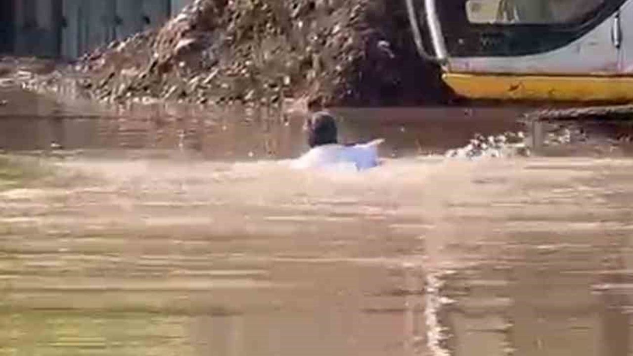 Hatay’da gece saatlerinde etkili olan yağışlı hava hayatı olumsuz etkilemiş ve göllenmeler yaşanmıştı. Payas ilçesinde gece etkili olan yağışla birlikte Yenişehir Mahallesi’nde bulunan şantiye alanındaki paletli kepçe su altında kaldı. Yağışlı havanın etkisini yitirmesiyle operatör, yüzerek ulaştığı iş makinasını yüzerek kurtardı. İş makinası operatörü, kepçeyi kurtararak bölgedeki suyun tahliyesi için tahliyelere başladı. Operatörün yüzerek iş makinasına ulaştığı anlar kameraya yansıdı.