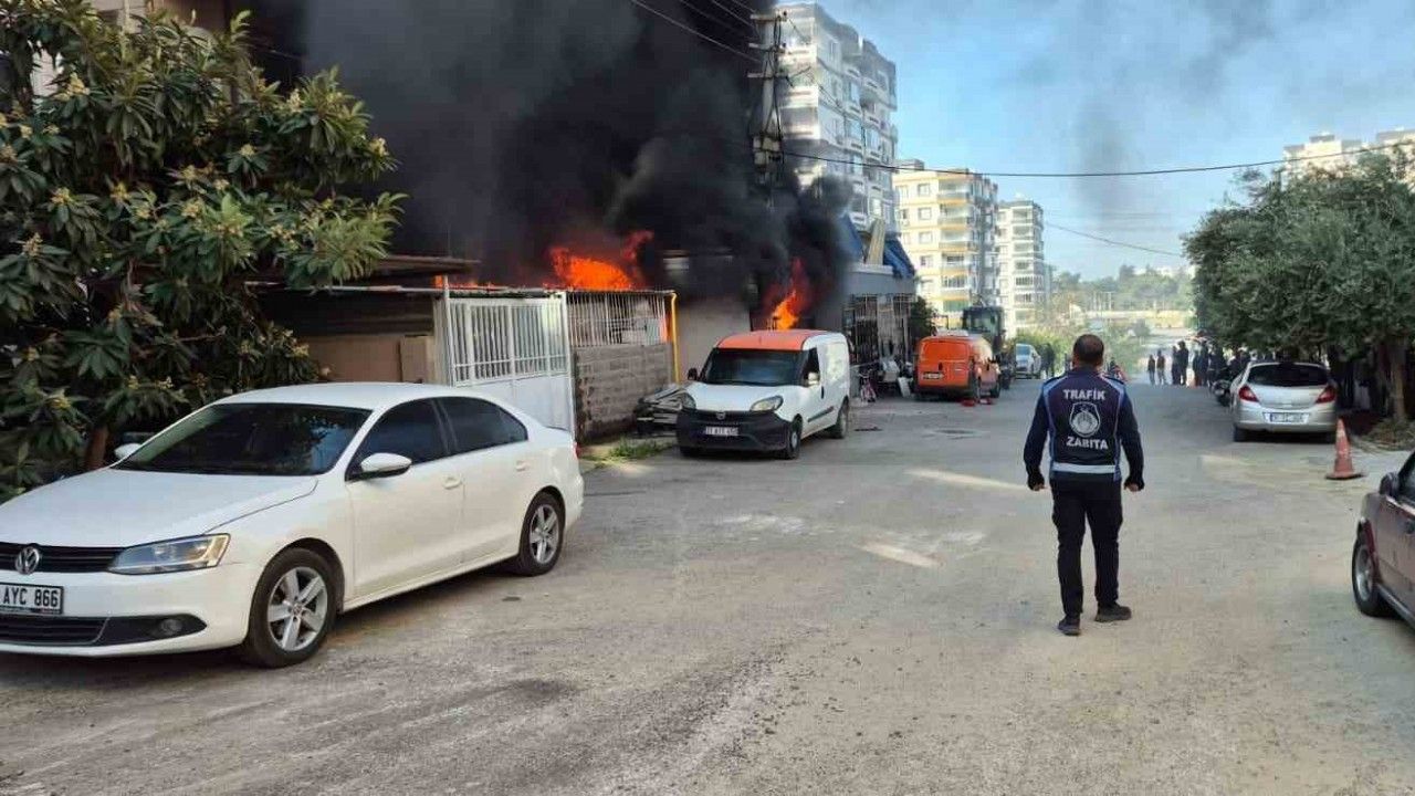Hatay’da iş yerinde başlayan yangında alevler apartmandaki daireye sıçradı. Yaralanma ve can kaybı yaşanmayan yangında iş yeri ve ev kullanılmaz hale geldi.
