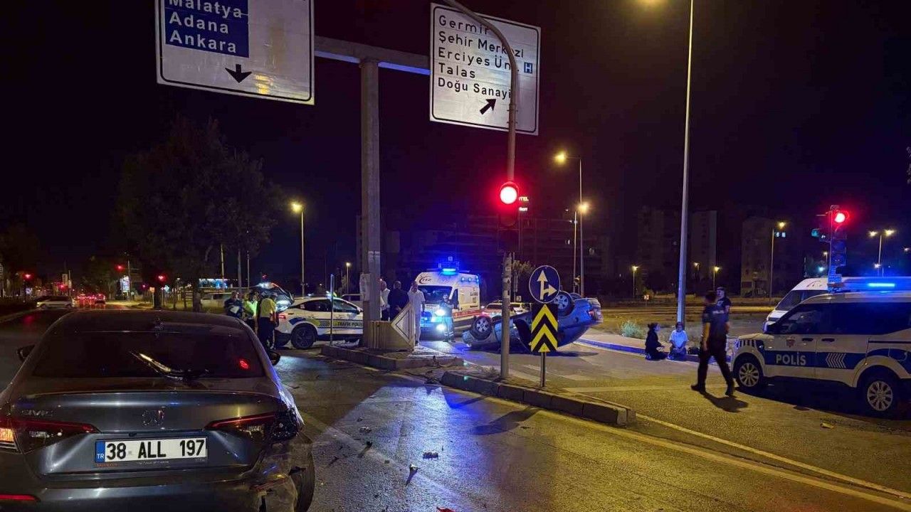 Edinilen bilgiye göre, ilçeye bağlı Yıldırım Beyazıt Mahallesi Sivas Bulvarında meydana gelen trafik kazasında; M.Ö. yönetimindeki 38 LE 072 plakalı otomobille ışıkta bekleyen 38 ALL 197 plakalı otomobile arkadan çarparak, takla attı. İhbar üzerine bölgeye polis ve sağlık ekipleri sevk edildi. Polis ekipleri yolun bir kısmını kapatarak güvenlik önlemi alırken, sağlık ekipleri de M.Ö. ve yolcu olan eşine müdahale etmek istedi. M.Ö. ve tedaviyi kabul etmezken, yapılan kontrollerde M.Ö.’nün 2.14 promil alkollü olduğu tespit edildi. M.Ö.’nün ehliyetine 6 ay el konulurken, alkollü araç kullanmaktan 9 bin 268 TL idari para cezası yazıldı. Otomobiller çekici ile kaldırıldı.