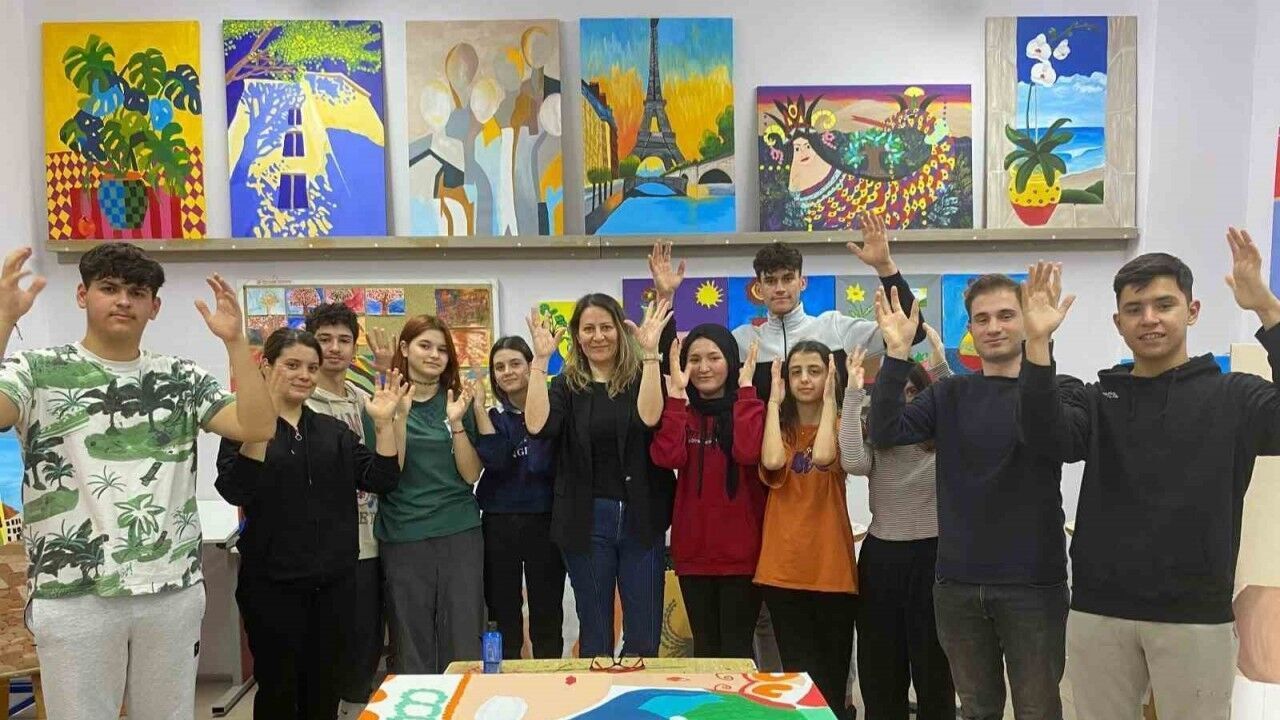İzmir’in Kınık ilçesinde bir lisede görev yapan Görsel Sanatlar Öğretmeni Heval Belgen, işitme engelli öğrencilerinin hayallerini resmetmelerini sağlıyor