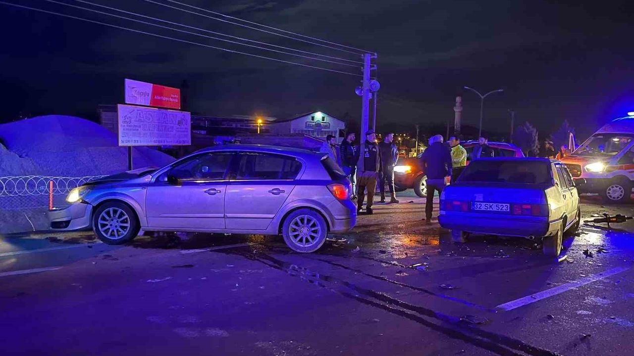Kaza, dün akşam saatlerinde Fazlı Aslan Kavşağı mevkiinde meydana geldi. Edinilen bilgilere göre, 101. Çevre Yolu üzerinde seyreden H.Ç. idaresindeki 32 SK 523 plakalı Tofaş marka otomobil, kavşakta M.T. yönetimindeki 32 FB 275 plakalı Opel marka otomobil ile çarpıştı. Kazada her iki sürücü hafif şekilde yaralandı. İhbar üzerine olay yerine sağlık ve polis ekipleri sevk edildi. Sağlık ekiplerince yaralı sürücülere olay yerinde müdahale edildi. Araçlarda maddi hasara yol açan kazayla ilgili inceleme başlatıldı.