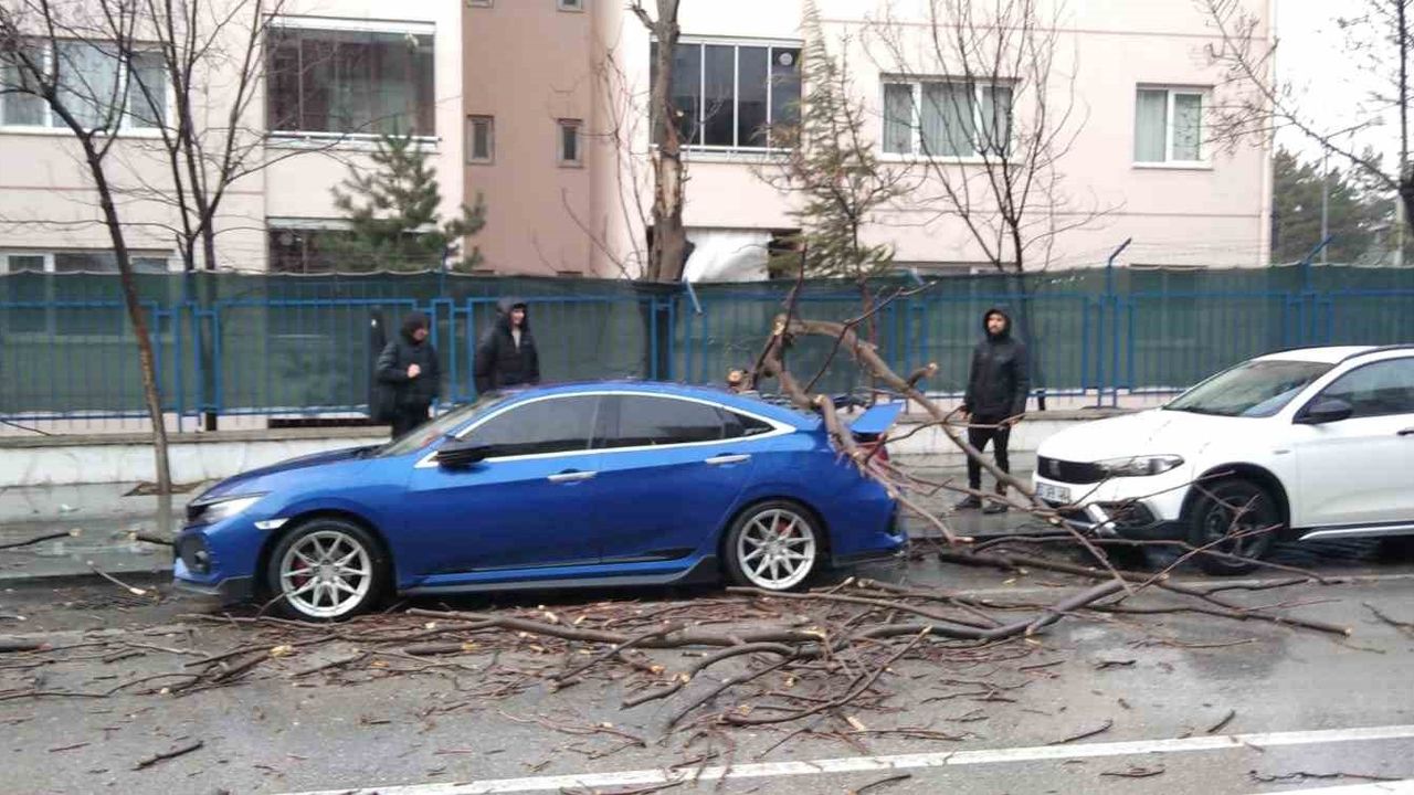 Isparta'da etkisini artıran fırtına ağaçların devrilmesine ve park halindeki araçların zarar görmesine neden oldu.