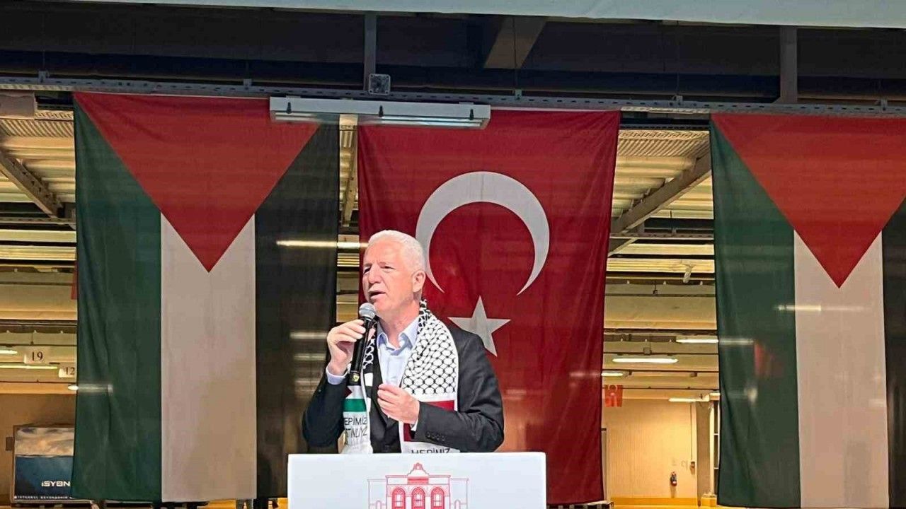 Programda konuşan İstanbul Valisi Davut Gül, "Bu mesele sadece ekonomik imkanlarla 3 lira, 5 lira bir tarafa koymak değil. Safımızı belirlemek. Birlikte hareket etmek. Mazlumların yanında olmak. Zalimin karşısında olmak. Daha da önemlisi bütün farklılıklarımızı bir tarafa bırakarak bu işi birlikte yapmak kıymetli. Geçen hafta içerisinde Esenler Belediyemiz yapmıştı. 15 bin 700 esnaf var. 15 bin 700 esnafın tamamı bir günlük kazançlarının bir kısmını bu işe ayırdılar. Bir şehrin tamamen bir konuda birlikte hareket etmesi çok görülen bir şey değil. Ama öyle bir zulüm var ki. Öyle bir zalimlik var ki. Öyle bir soykırım var ki. Zerre kadar kalbinde vicdanı olan, zerre kadar merhameti olan bir insanın böyle davranmama ihtimali yok. Dini, dili, ırkı, mezhebi ne olursa olsun. Bu başka bir şey. Dünya tarihi birçok zalimlik görmüştür ama böyle bir zalimlik herhalde çok sayılıdır. Belki bu kadar şiddetlisini görmemiştir. Hepimiz şahitlik ettik. Allahtan duamız, Allah bu zalimliği yapan bu katillerin helak olduğunu da bize göstersin. Türkiye olarak bu anlamda geçmişimiz temiz. Durduğumuz yer temiz. Sayın Cumhurbaşkanımızın liderliğinde dünyanın neresine gidersek gidelim gücümüz nispetinde yanlışa yanlış, doğruya doğru. Zalime zalim, mazluma mazlum diyebilecek durumdayız. Millet olarak da karınca kararınca 7’den 70’e bütün farklılıklarımızı bir kenara bırakarak bunu yapmaya gayret ediyoruz" dedi.