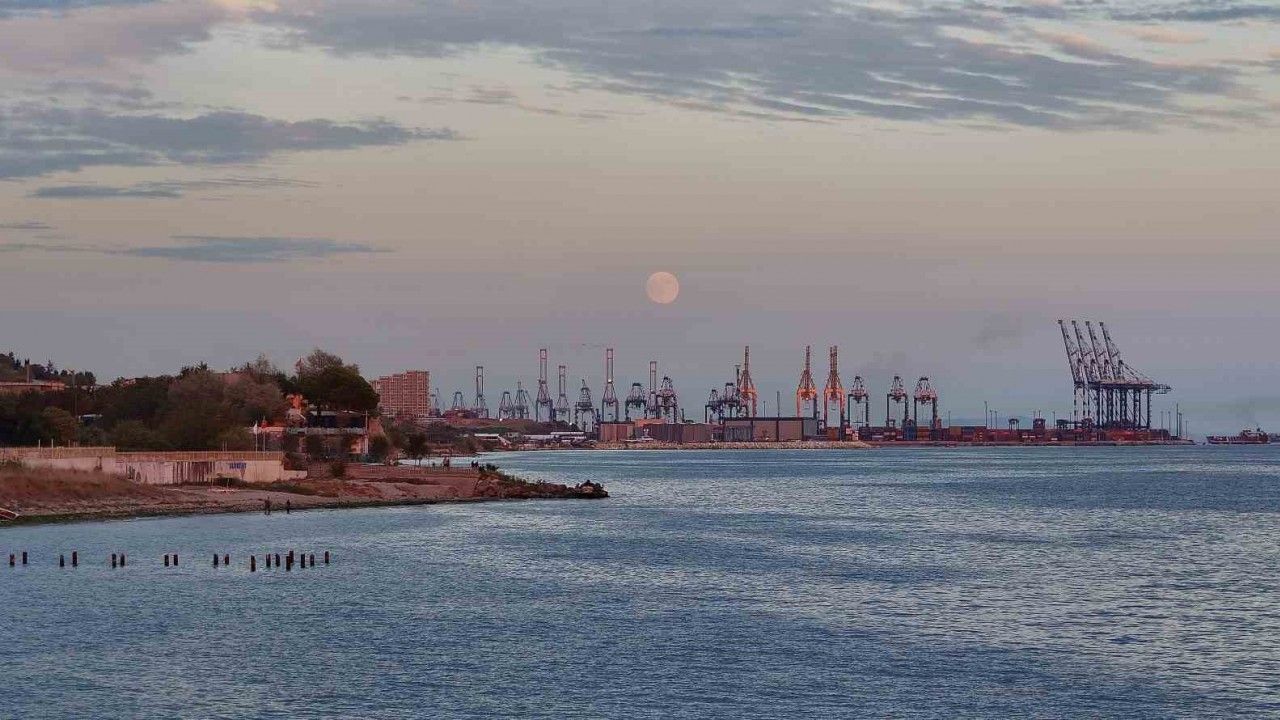 Türkiye’nin konteyner hacmi bakımından en büyük, kargo tonajında beşinci büyük limanı olan Ambarlı limanında Dolunay görüntülendi. Gün batımıyla beraber ortaya çıkan dolunay havadan görüntülendi. 300 metrelik dev gemilerin yanaşabildiği limanda konteyner vinçleri arasında görüntülenen dolunay manzarası izleyenleri kendine hayran bıraktı. Bir tekne dolunaya doğru yol aldığı anlar havadan çekilen görüntülere yansıdı. Limana yanaşan bir gemi ise zaman atlatmalı çekim tekniği ile çekildi.