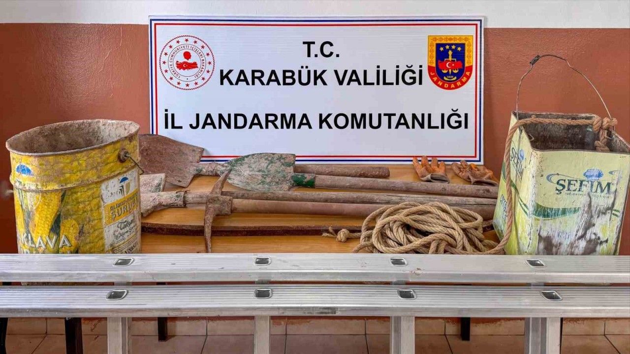 Karabük’ün Ovacık ilçesinde izinsiz kazı yaptığı tespit edilen iki şüpheli, jandarma ekiplerince suçüstü yakalandı.