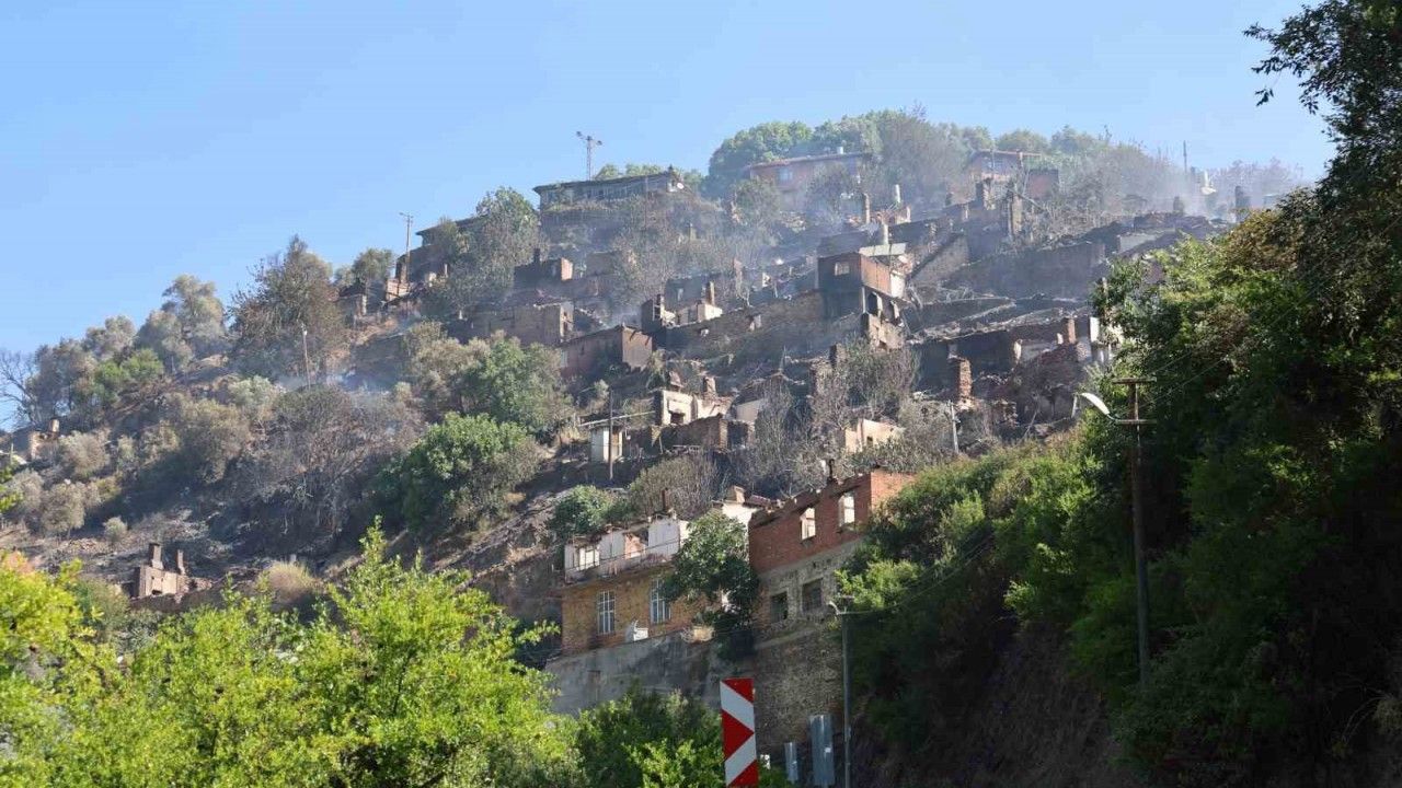 İzmir’in Ödemiş ilçesinde 3 gün önce başlayan orman yangınında alevlerin tehdit etmesi üzerine boşatılan köylerden Tosunlar Mahallesi adeta harabeye döndü.