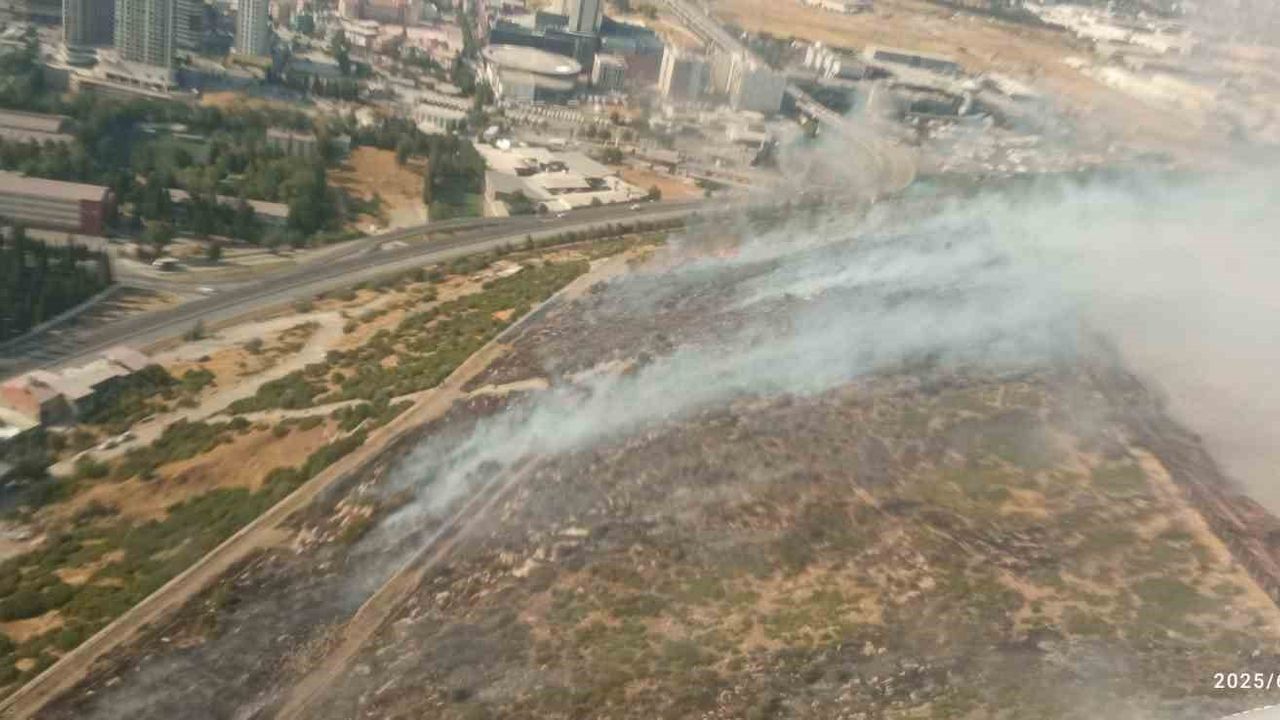 İzmir’in Bornova ilçesinde makilik ve otluk alanda çıkan yangına havadan ve karadan müdahale ediliyor.