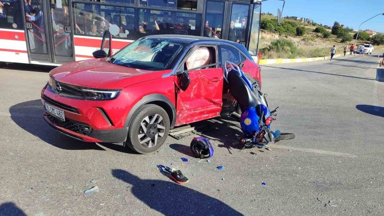 İzmir’in Foça ilçesinde otomobil ile motosikletin çarpışması sonucu 1 kişi ağır yaralandı.