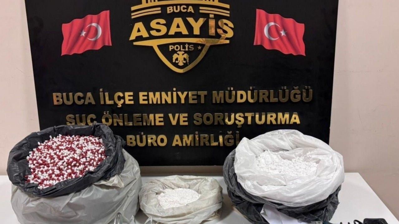 Buca İlçe Emniyet Müdürlüğü ekipleri tarafından, uyuşturucu madde ticareti ve imalatına yönelik yürütülen çalışmalar kapsamında Yeşilbağlar Mahallesi’nde operasyon gerçekleştirildi. Operasyonda M.A.K. adlı şüpheli yakalanırken, şüphelinin evinde ve aracında yapılan aramalarda 10 kilogram sentetik ecza tozu ile 28 bin doldurulmaya hazır boş kapsül ele geçirildi.