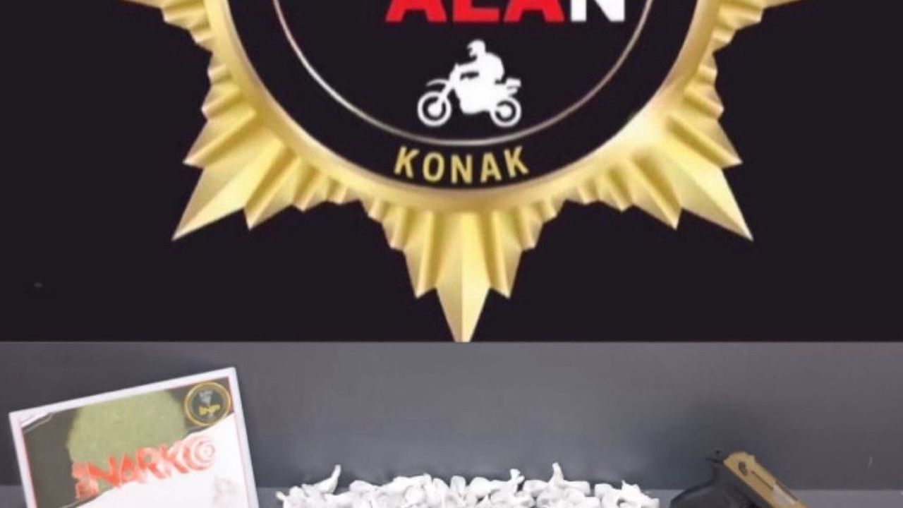 Konak İlçe Emniyet Müdürlüğü Narko Alan ve Devriye Ekipler Büro Amirliği ekipleri, suç ve suçlularla mücadele kapsamında 9 Ağustos günü ilçe genelinde çalışma yaptı. Operasyonda 4 adet ruhsatsız tabanca, 120 gram bonzai, 62 adet sentetik ecza hapı, uyuşturucu madde ticaretinden elde edildiği değerlendirilen 32 bin 765 lira ve 38 adet mermi ele geçirildi.