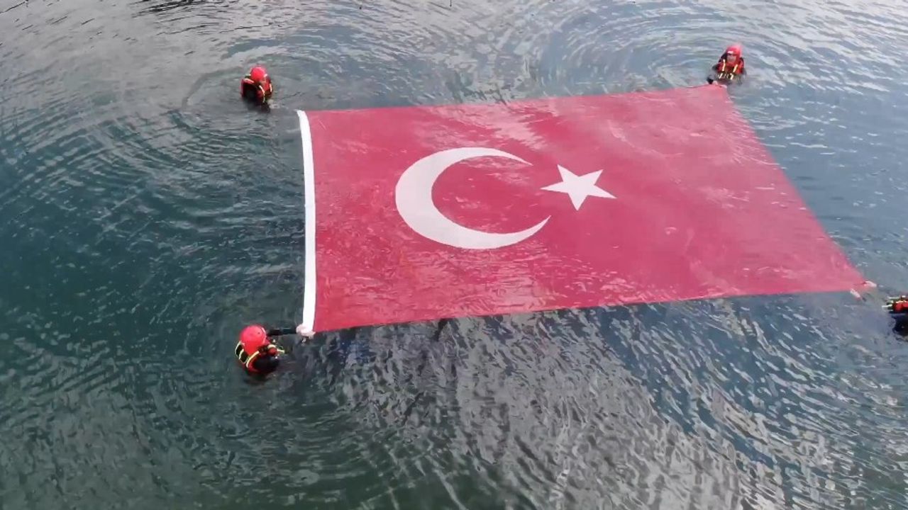 Jandarma Teşkilatı’nın 186’ncı kuruluş yıl dönümü kutlamaları kapsamında Bolu İl Jandarma Komutanlığı’na bağlı JAK timi, Gölcük Tabiat Parkı’nda göle girerek suyun ortasında dev Türk bayrağı açtı.
