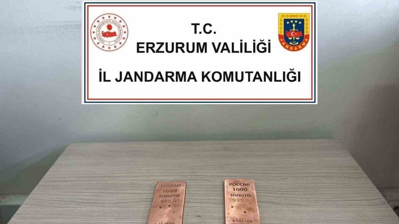 Erzurum’da jandarma ekiplerinin yaptığı operasyonlarda 2 kilo sahte külçe altın ele geçirildi.