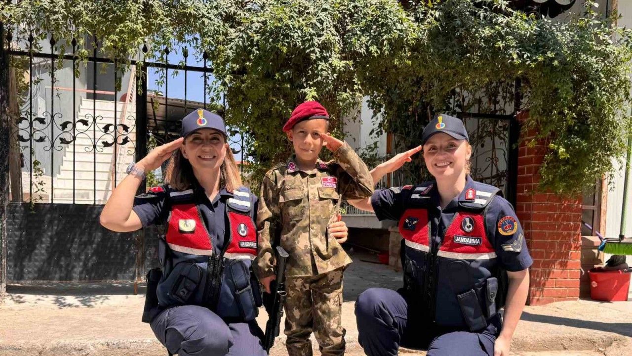 Aydın’da jandarma ekipleri 15 Temmuz Demokrasi ve Milli Birlik Günü kapsamında Komando Andını ezbere okuyan Ömer Halis isimli çocuğu ziyaret etti.