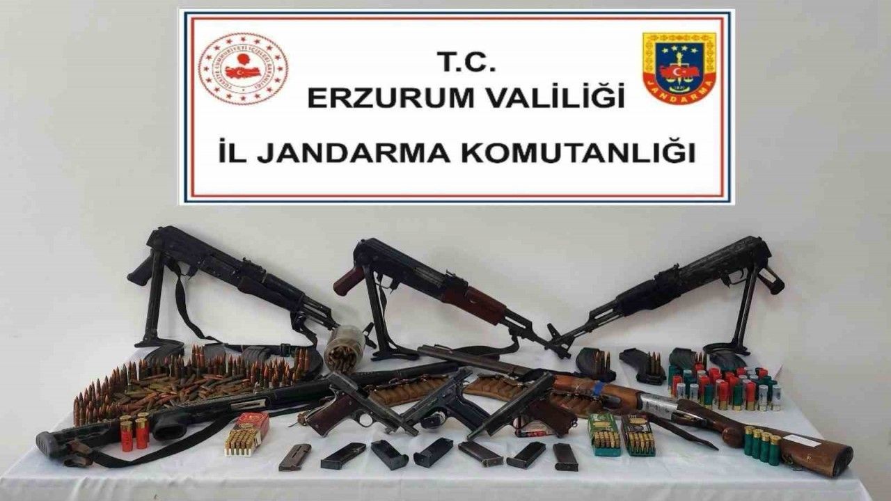 Erzurum İl Jandarma Komutanlığı Kaçakçılık ve Organize Suçlarla Mücadele Şube Müdürlüğü koordinesinde Karayazı ilçesinde gerçekleştirilen operasyonda çok sayıda silah ele geçirildi.
