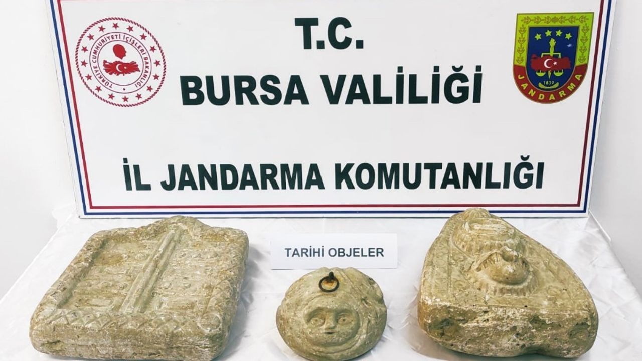 Gürsu İlçe Jandarma Komutanlığı ile İstihbarat Şube Müdürlüğü ekipleri tarafından Kumlukalan Mahallesi’nde şüpheli bir araç durduruldu. Cumhuriyet Savcılığı’ndan alınan arama kararına istinaden araçta yapılan aramada, tarihi eser niteliğinde olduğu değerlendirilen 3 adet obje ele geçirildi.
