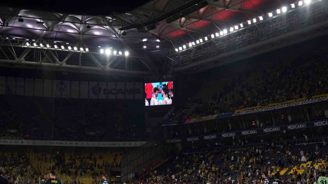 Trendyol Süper Lig’de Fenerbahçe ile Trabzonspor arasında oynanan müsabaka sonrasında stat hoparlöründen taraftarlara, A Milli Basketbol Takımı’nın final maçının izleneceği için stadyumdan ayrılmamaları anonsu yapıldı. Sarı-lacivertli taraftarların bir bölümü dev ekrana yansıtılan müsabakayı tribünlerden takip etti.