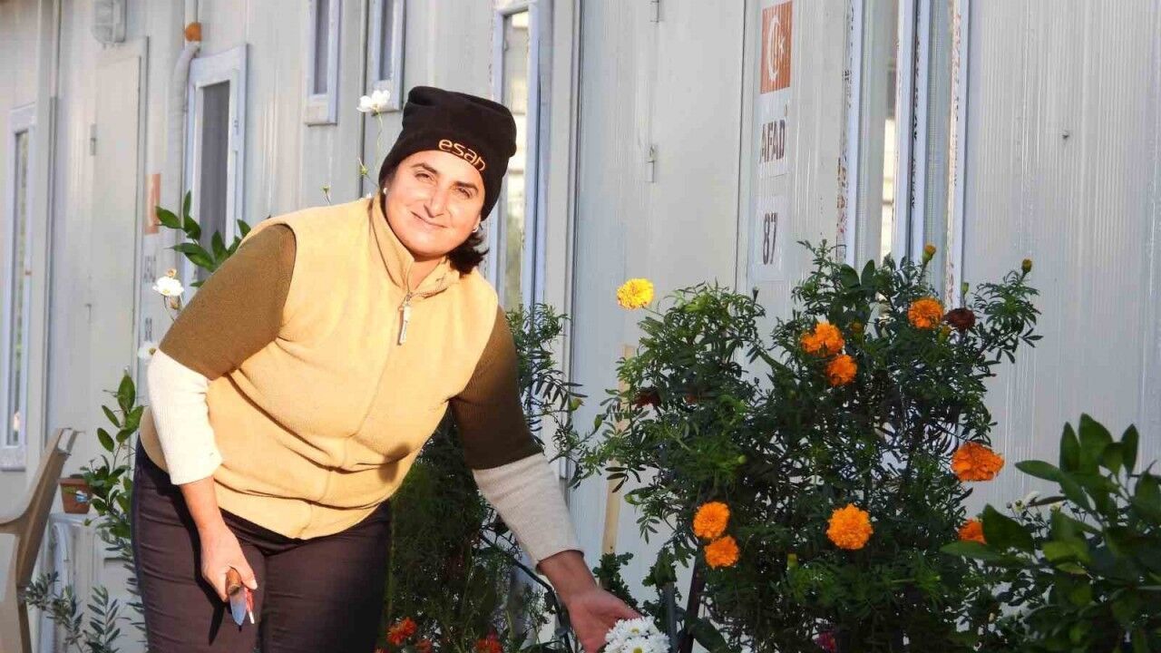 Çiçeklerle uğraşırken deprem stresini attığını ifade eden Elhem Emeç ise, “Yenimahalle Konteyner Kent’te yaşıyorum. Çok seviyorum çiçekleri. Açık alanda stresimizi atıyoruz çiçeklerle uğraşırken. Çiçeklerle uğraşırken stresimizi atıyoruz, deprem korkusunu atmaya çalışıyoruz. En iyi uğraş çiçek. Kadın eli değen her yer güzelleşir, burası da güzelleşti. Burada her yer yemyeşil, buraya gelen herkes de fark ediyor. Görünümü güzel” şeklinde konuştu.