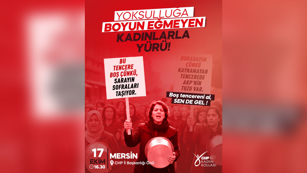 Mersin’de kadınlar, artan yoksulluğa ve ekonomik adaletsizliğe karşı seslerini yükseltmek için bir araya geliyor. Yapılan çağrıda, kadınlar 17 Ekim Cuma günü düzenlenecek yürüyüşe katılmaya davet edildi.