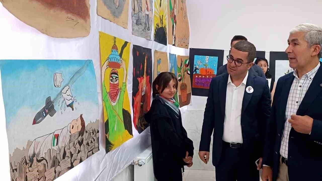 Kağızman’da ‘Filistin’ temalı resim sergisi açıldı.